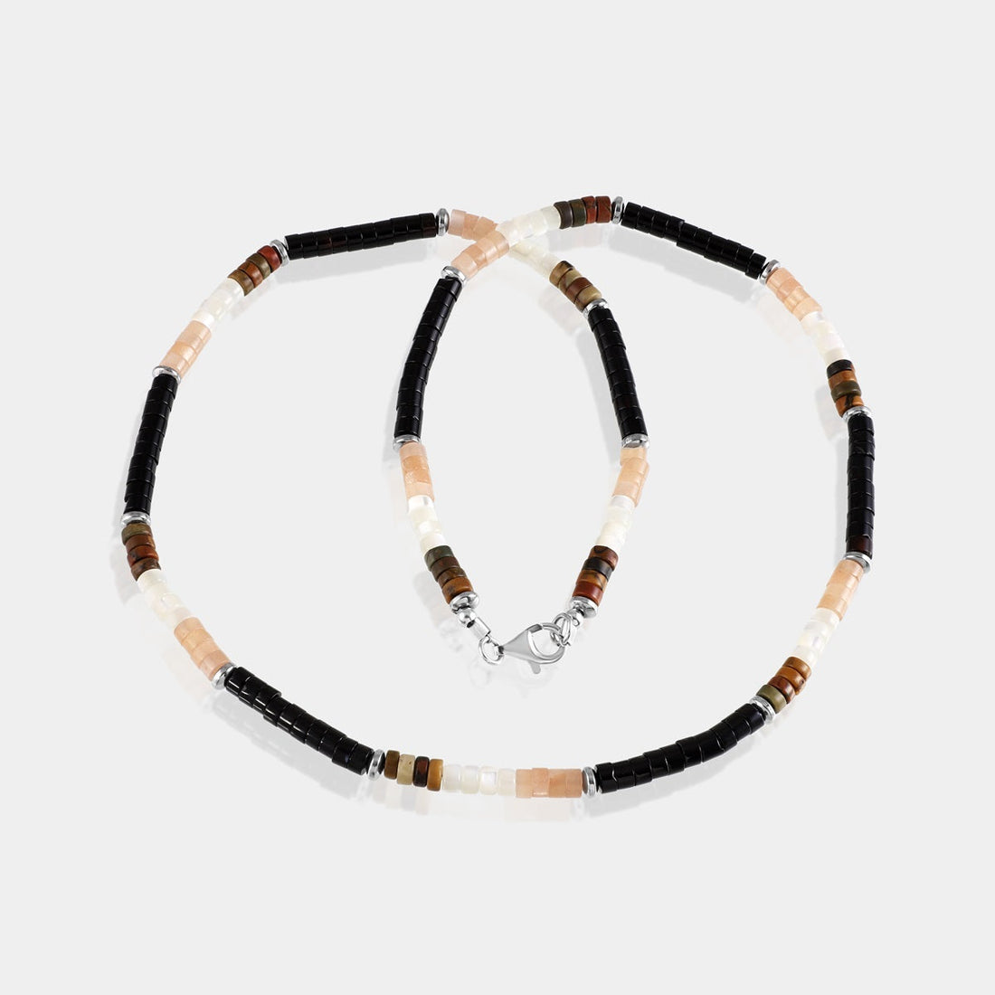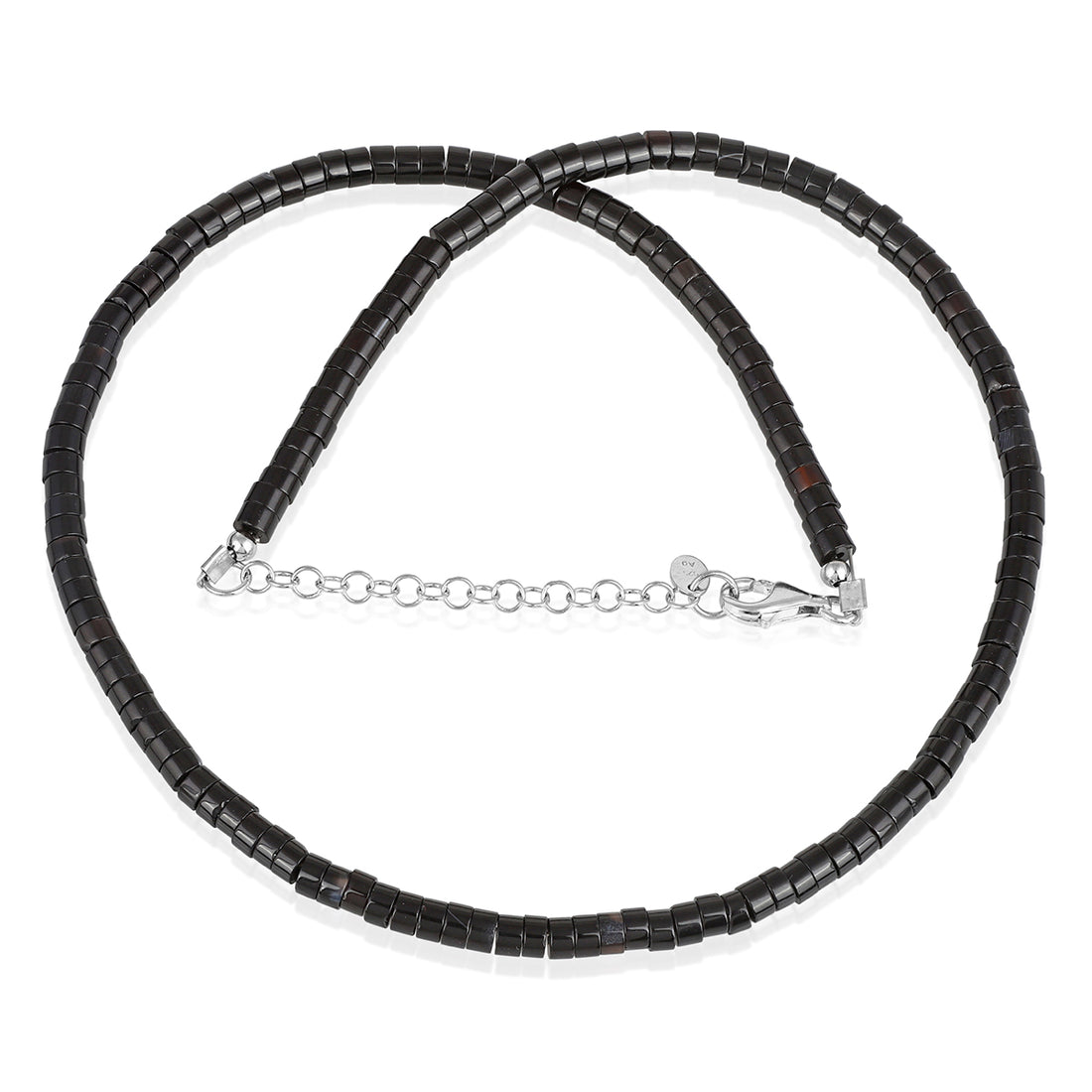 Black Onyx Heishi Beads Unisex Silver Necklace