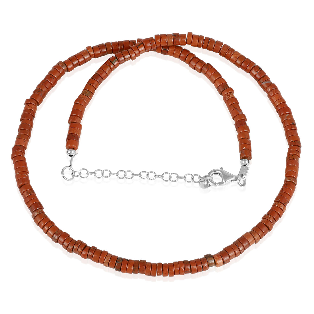 Red Jasper Heishi Beads Unisex Silver Necklace