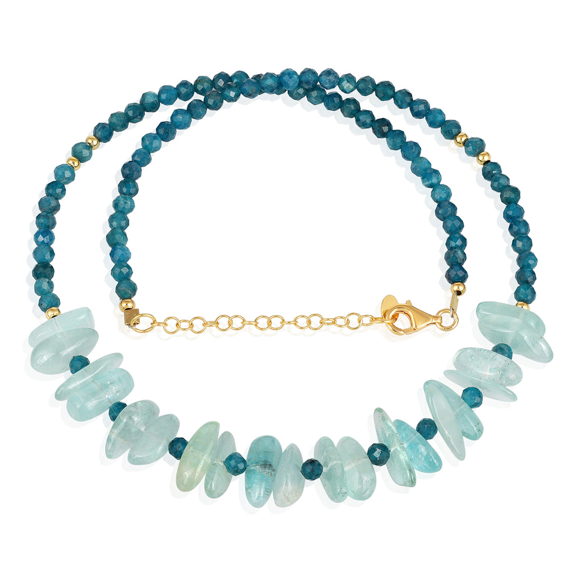 Blue Onyx, Sapphire and Pearl Silver Necklace