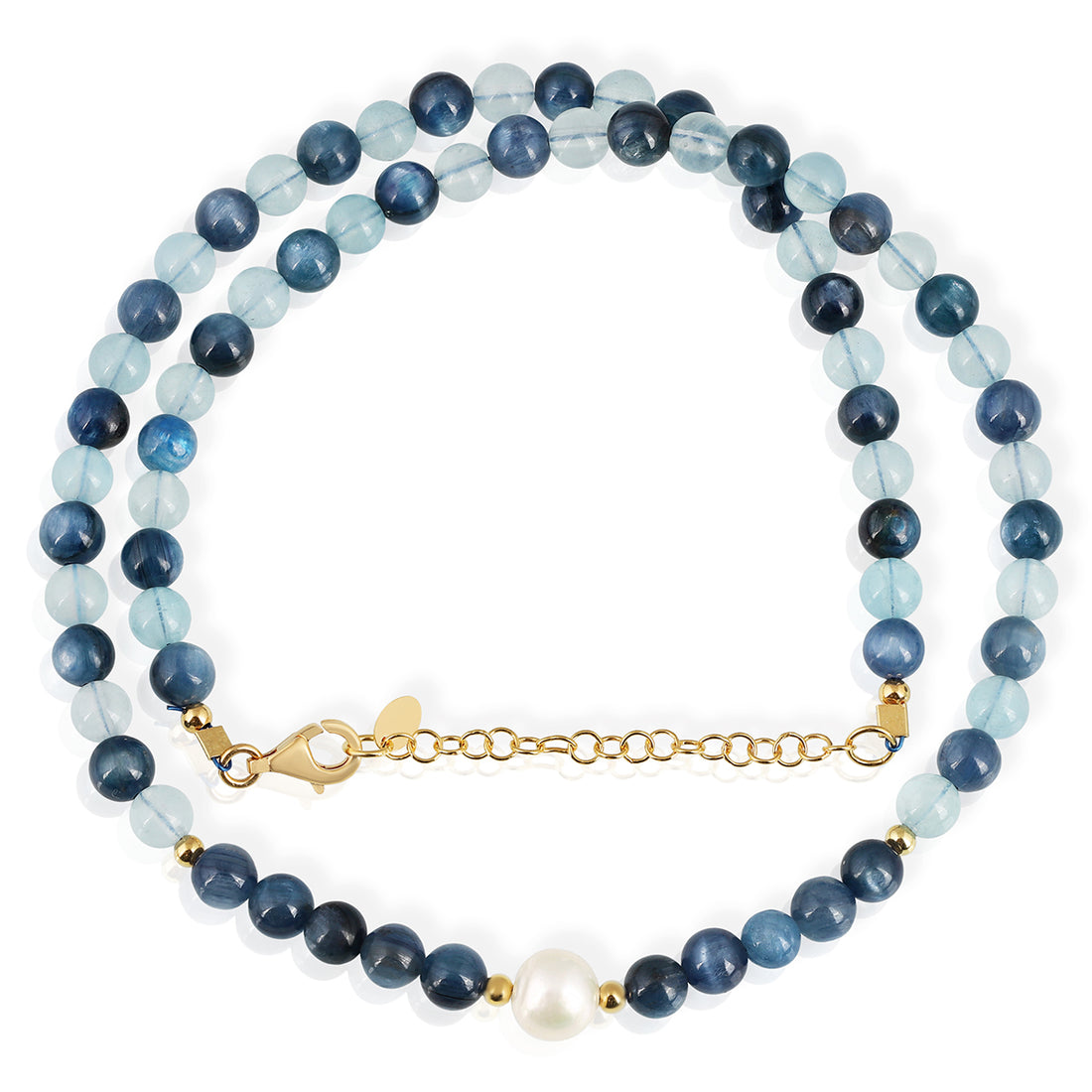 Kyanite, Aquamarine and Pearl Silver Necklace
