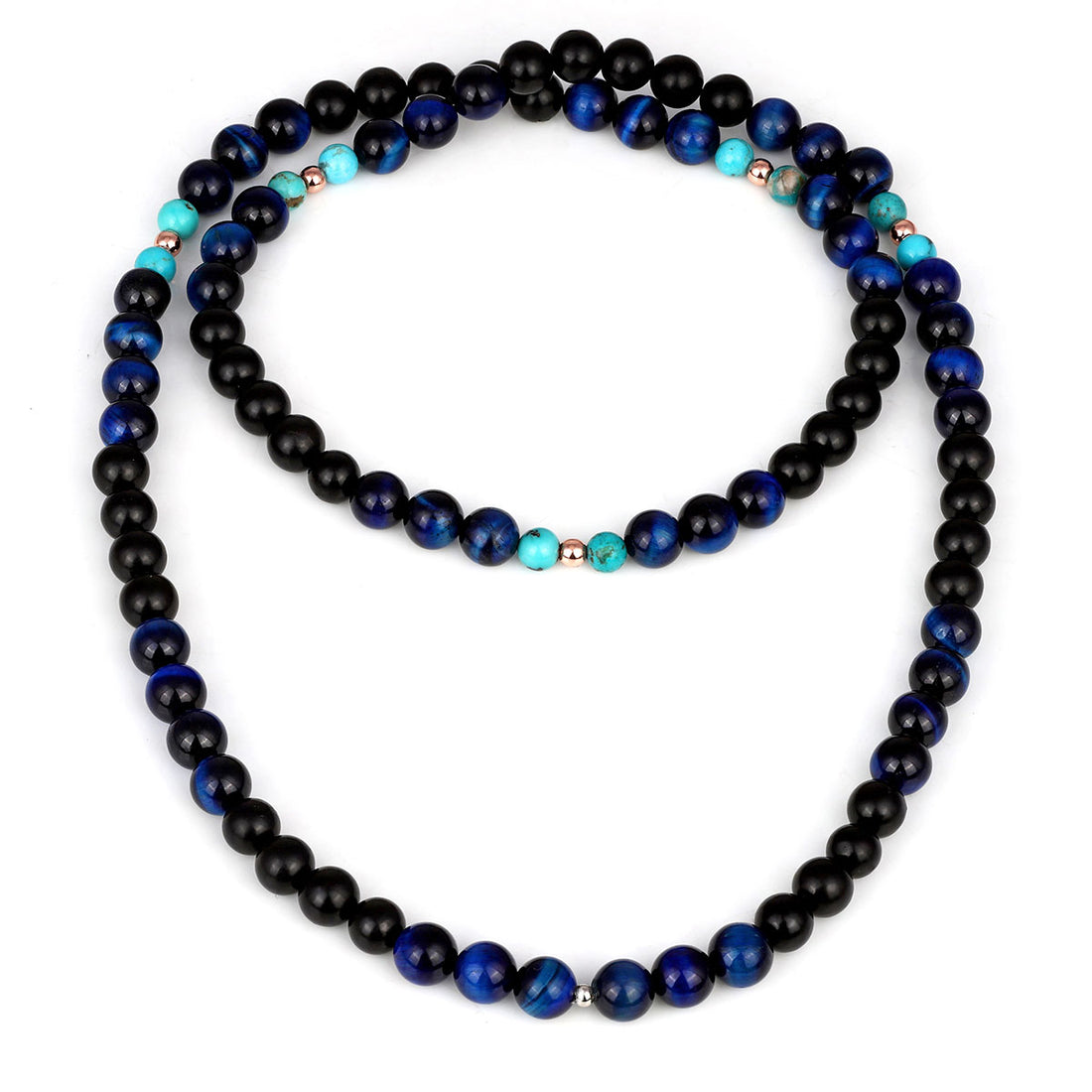Tiger's Eye, Black Jet, Turquoise and Hematite Long Necklace