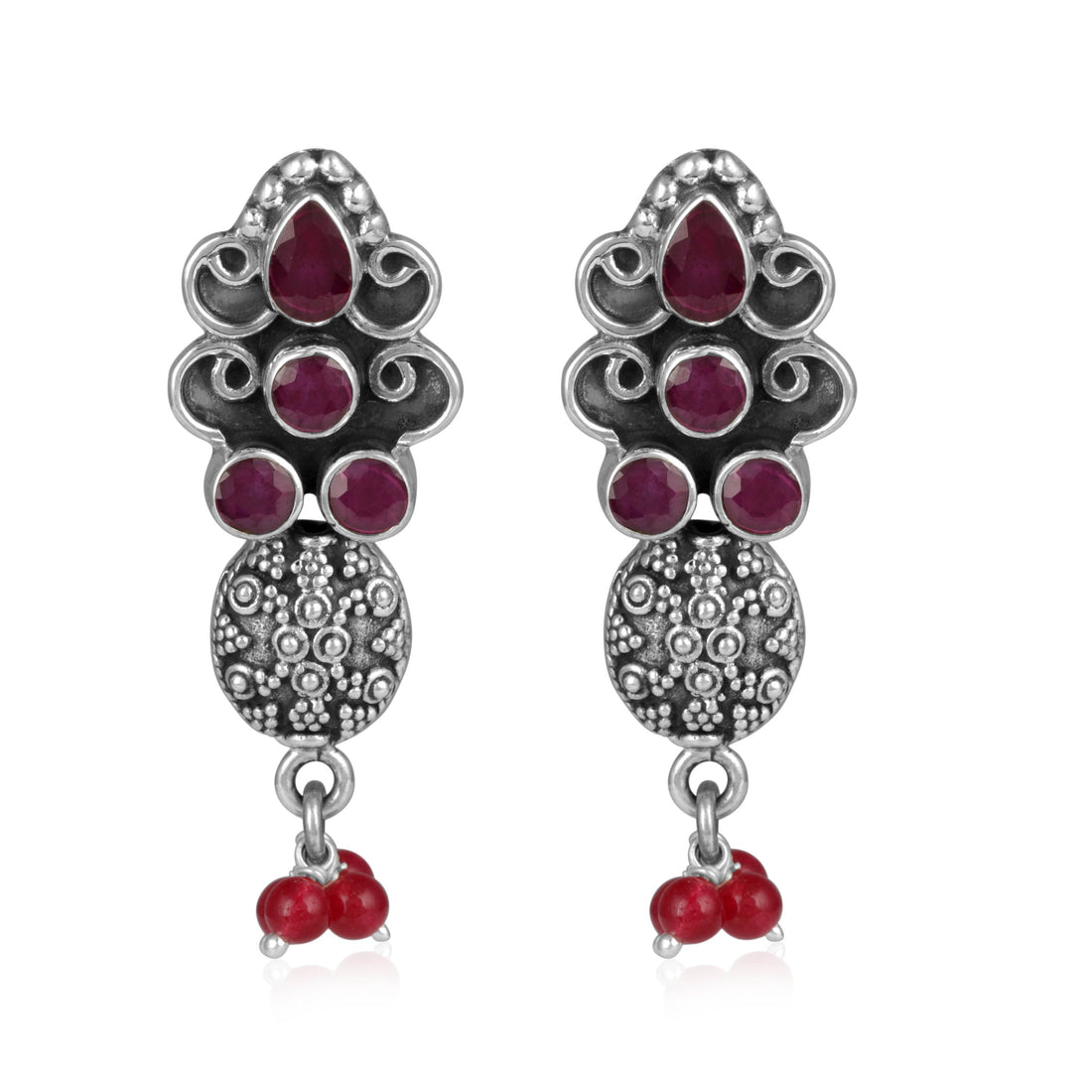Rainbow Moonstone and Zircon Silver Dangle Earrings