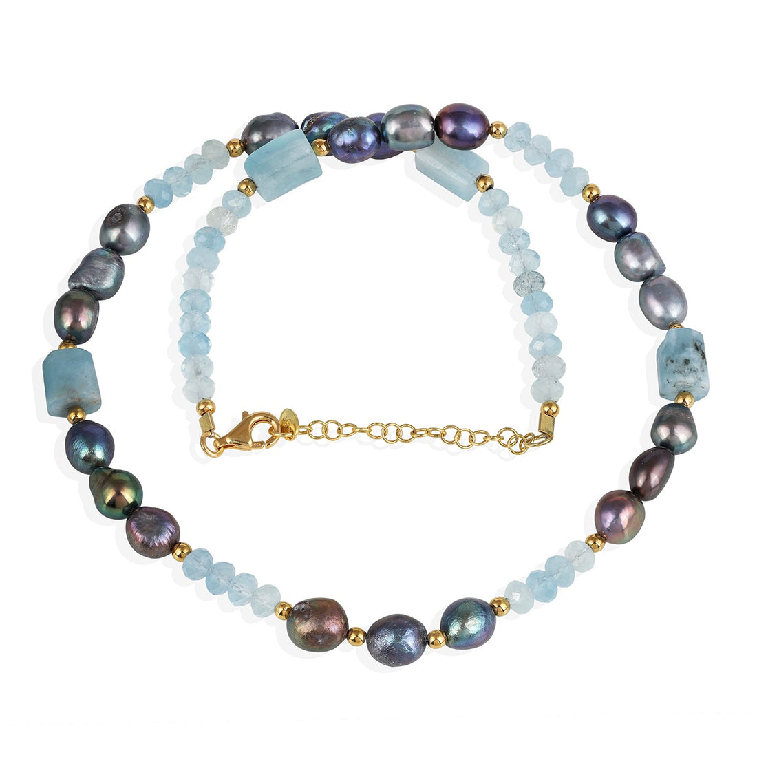Lapis Lazuli and Hematite Layered Silver Unisex Necklace
