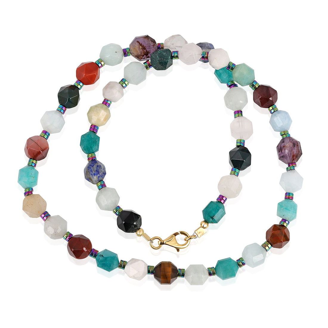 Black Spinel, Red Onyx and Tiger's Eye Silver Unisex Necklace