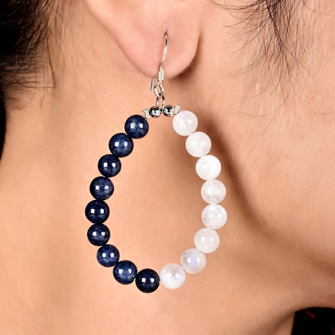 Blue Sapphire and Moonstone Beads Dangle Earrings
