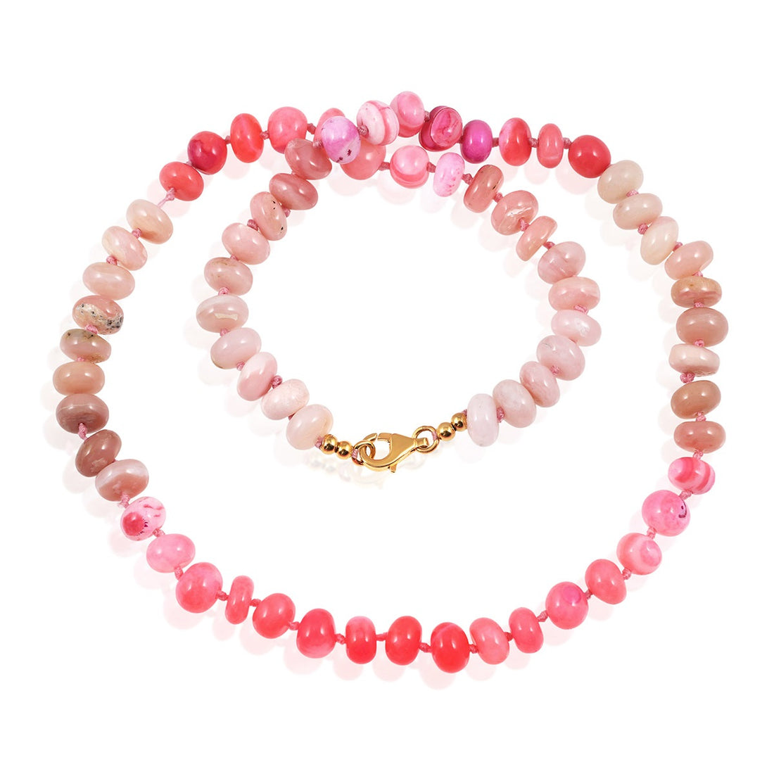 Pink Opal Beads Knotted Necklace with Silver Lock