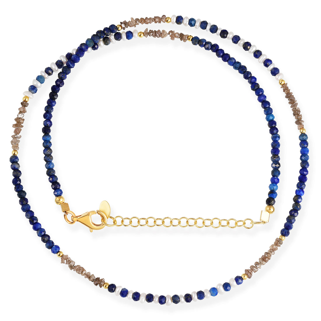 Lapis Lazuli, Diamond and Pearl Silver Necklace