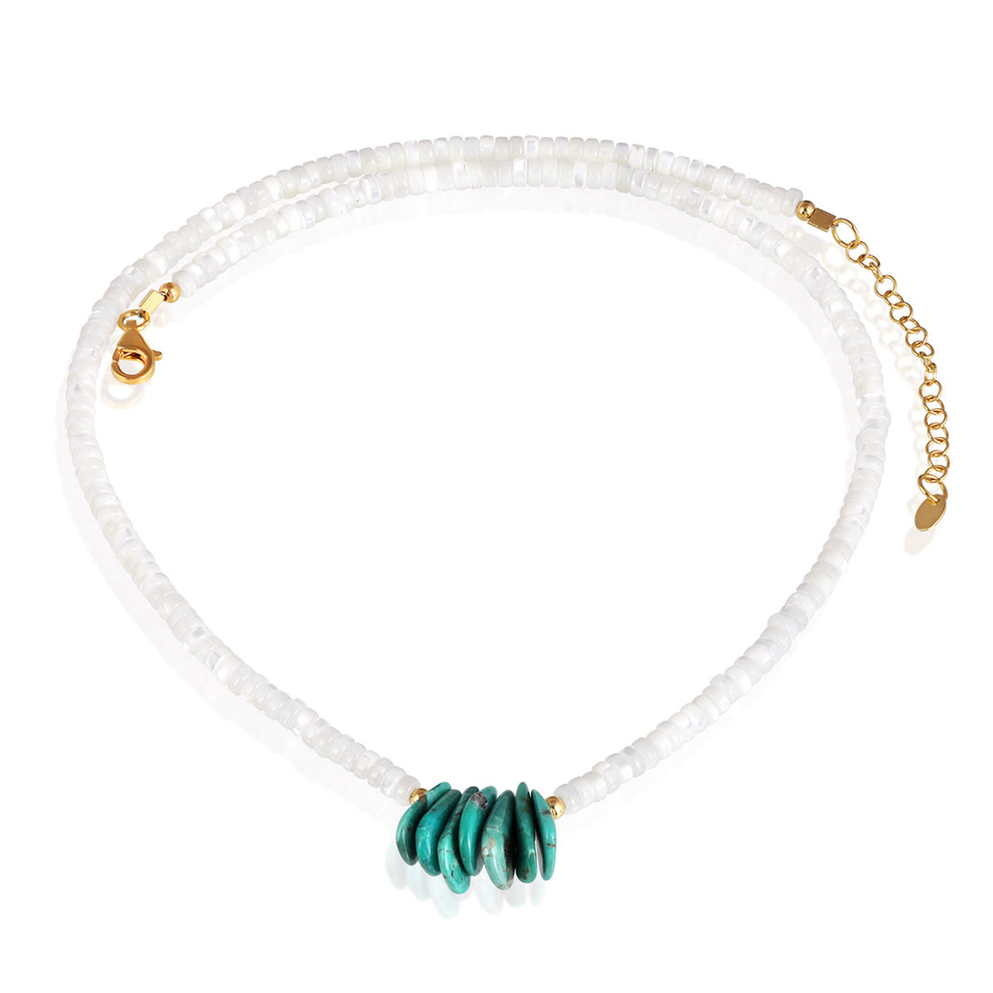 Mother of Pearl and Turquoise Silver Necklace