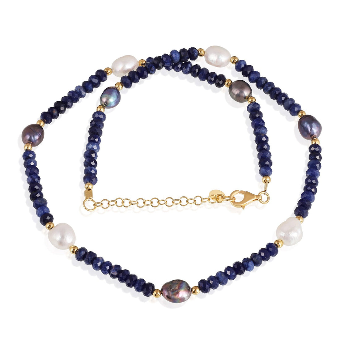 Lapis Lazuli, Pearl and Hematite Silver Necklace