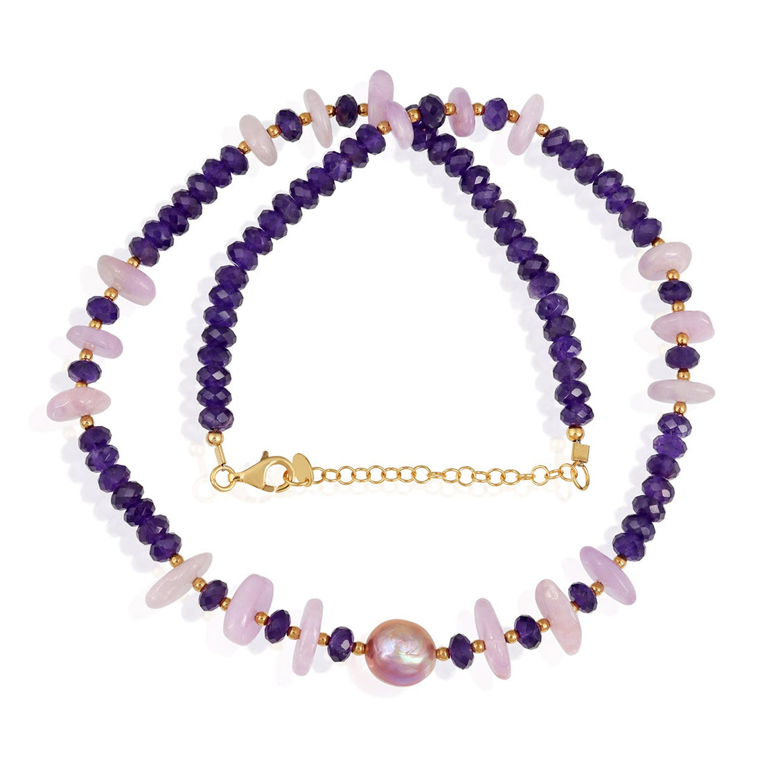 Amethyst, Kunzite and Pearl Silver Necklace
