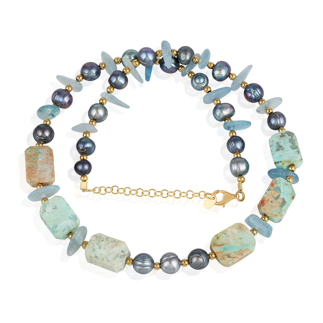 Aquamarine, Pearl and Turquoise Silver Necklace