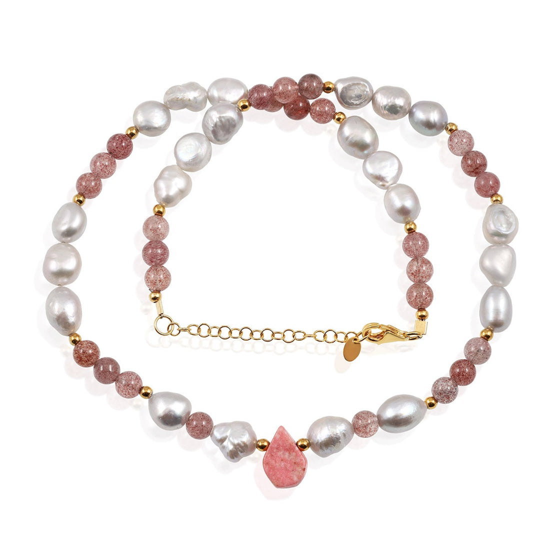 Pink Opal and Strawberry Quartz Silver Necklace