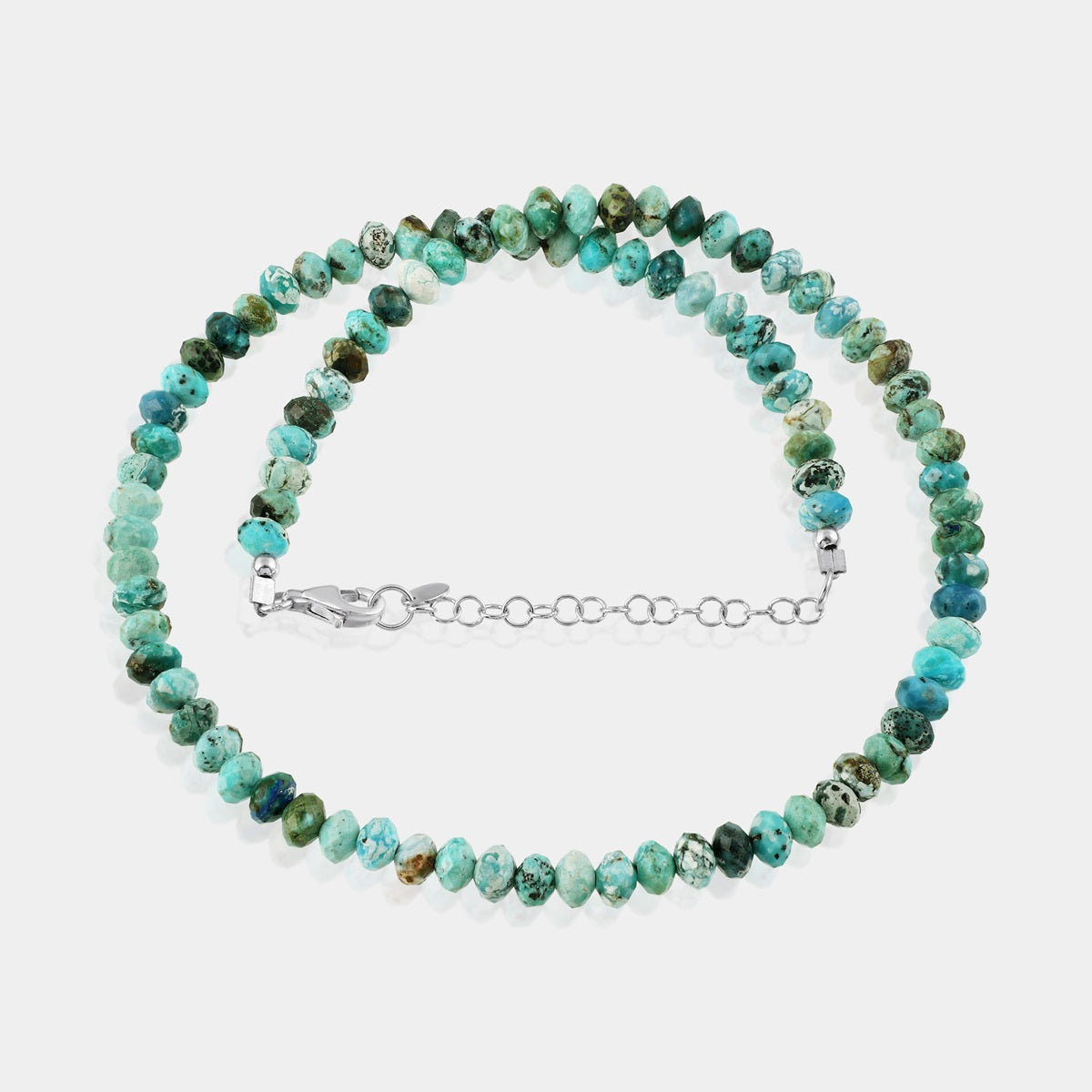 Adorn yourself with the timeless beauty of our Natural Blue Opaline Gemstone Handmade 925 Silver Beads Necklace. Each delicate 5.5mm faceted rondelle bead is meticulously strung together to create a stunning piece that exudes elegance.