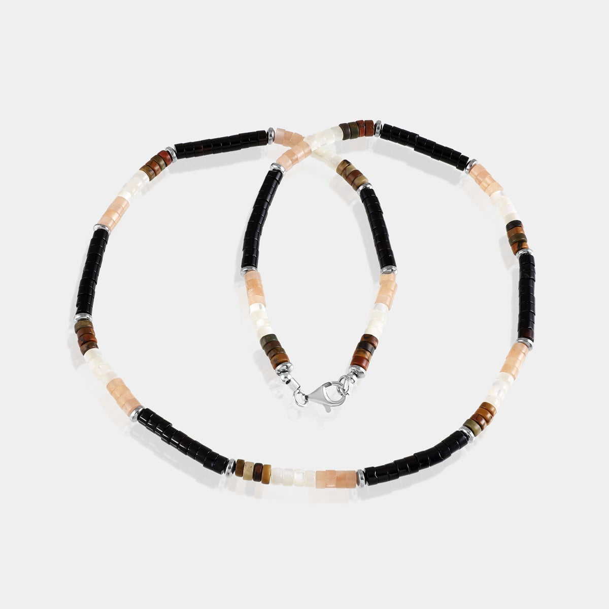 Embrace the ethereal allure of nature with our "Radiant Harmony" necklace, meticulously crafted with a symphony of exquisite materials. Each bead in this stunning piece is a testament to both elegance and earthly beauty. Mother of Pearl, renowned for its iridescence and calming properties, serves as the focal point, radiating tranquility and serenity.