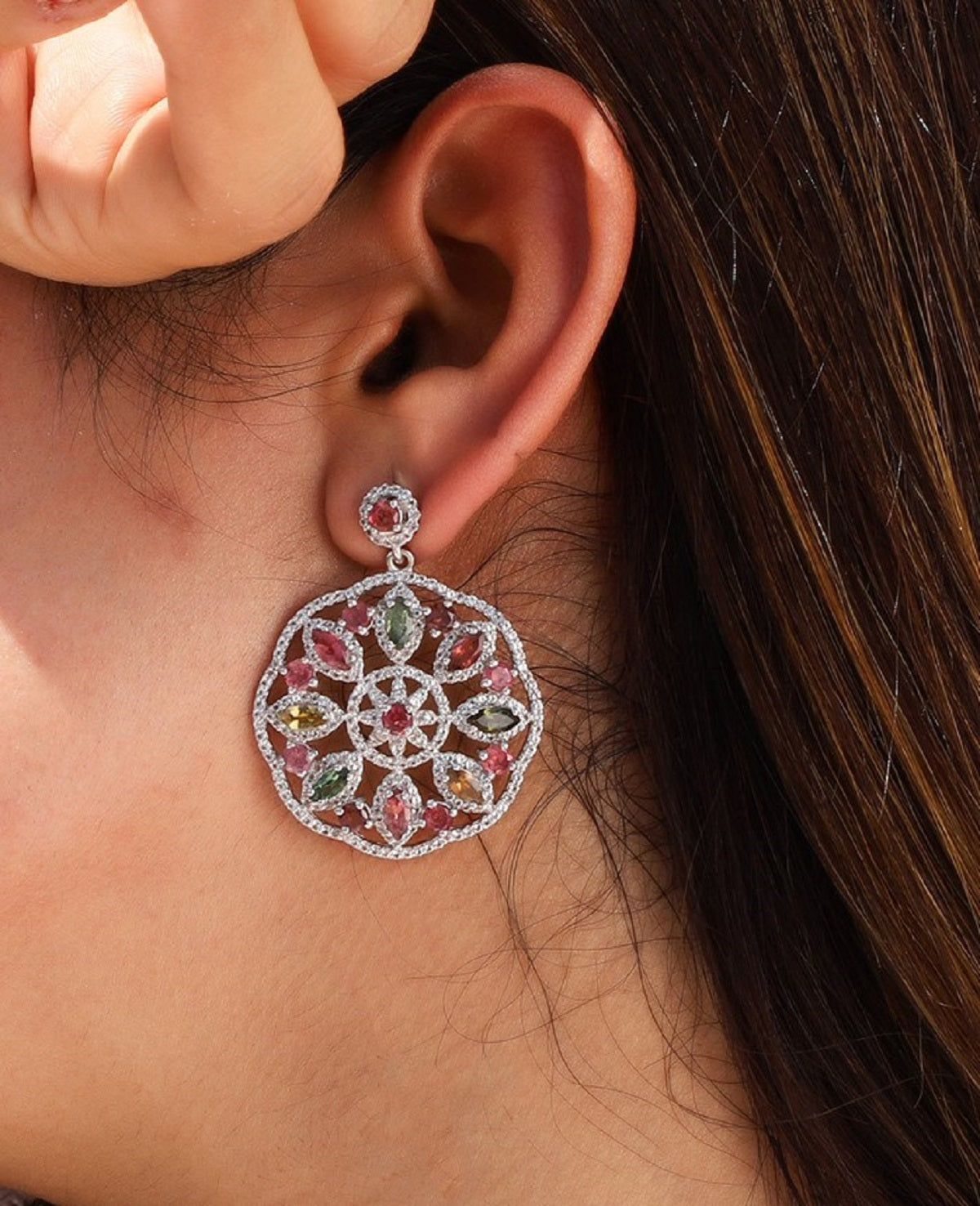Natural Multi Tourmaline & White Topaz Cut Gemstone 925 Silver Drop Earrings